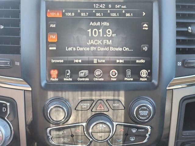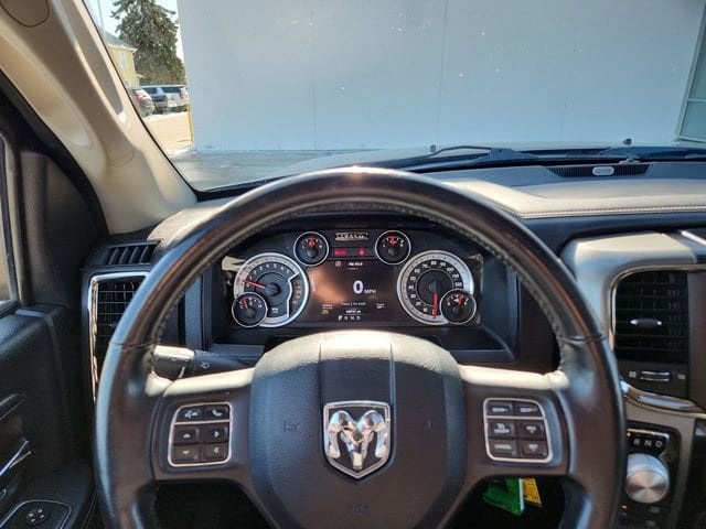 1 Yr. Trial (Registration Required), 115V Auxiliary Power Outlet, 20 x 9 Polished/Painted Aluminum Wheels, 3.21 Rear Axle Ratio, 32 Gallon Fuel Tank, 4-Wheel Disc Brakes, 4x4 Flat Black Badge, 5-Year SiriusXM Traffic Service, 5-Year SiriusXM Travel Link Service, 6 Speakers, 8.4 Touchscreen Display, 9 Amplified Speakers w/Subwoofer, ABS brakes, Adjustable pedals, Air Conditioning, Air Conditioning ATC w/Dual Zone Control, Alloy wheels, AM/FM radio, Anti-Spin Differential Rear Axle, Auto-dimming door mirrors, Auto-dimming Rear-View mirror, Automatic temperature control, Bi-Function Halogen Projector Headlamps, Black Ram 1500 Sport Group, Black Ram Head Tailgate Badge, Body Color/Bright Billets Grille, Brake assist, Bucket Seats, Bumpers: body-color, Class IV Receiver Hitch, Cloth Bucket Seats, Compass, Delay-off headlights, Driver door bin, Driver vanity mirror, Dual front impact airbags, Dual front side impact airbags, Electronic Stability Control, Emergency communication system, Engine Block Heater, Flat Black 5.7L Hemi Badge, Flat Black Ram 1500 Badge, Folding Flat Load Floor Storage, Front anti-roll bar, Front Bucket Seats, Front Center Armrest w/Storage, Front dual zone A/C, Front fog lights, Front reading lights, Front wheel independent suspension, Full Length Floor Console, Fully automatic headlights, Garage door transmitter, GPS Antenna Input, GPS Navigation, Harman Radio Manufacturer, HD Radio, Heated door mirrors, Heated front seats, Heated steering wheel, High Back Seats, Illuminated entry, Integrated Voice Command w/Bluetooth, Leather steering wheel, Low tire pressure warning, Manufacturer's Statement of Origin, Media Hub (SD, USB, AUX), Occupant sensing airbag, Outside temperature display, Overhead airbag, Overhead console, Panic alarm, ParkSense Front/Rear Park Assist System, ParkView Rear Back-Up Camera, Passenger door bin, Passenger vanity mirror, Power door mirrors, Power driver seat, Power Lumbar Adjust, Power steering, Power Sunroof, Power windows, Quick Order Package 26L Sport, Radio data system, Radio: Uconnect 8.4A AM/FM/SXM/BT, Radio: Uconnect 8.4AN AM/FM/SXM/HD/BT/NAV, Rear 60/40 Split Folding Seat, Rear anti-roll bar, Rear seat center armrest, Rear step bumper, Rear Window Defroster, Remote keyless entry, Remote Start & Security Group, Remote Start System, Security Alarm, Single Disc Remote CD Player, SIRIUSXM Satellite Radio, SIRIUSXM Traffic, SiriusXM Travel Link, Speed control, Split folding rear seat, Sport Performance Hood, Sport Premium Group, Steering wheel mounted audio controls, Tachometer, Tilt steering wheel, Traction control, Trip computer, Turn signal indicator mirrors, Uconnect Access, Uconnect Access 1 Year Trial, Variably intermittent wipers, Voltmeter, Wheels: 20 x 9 Semi-Gloss Black Aluminum.